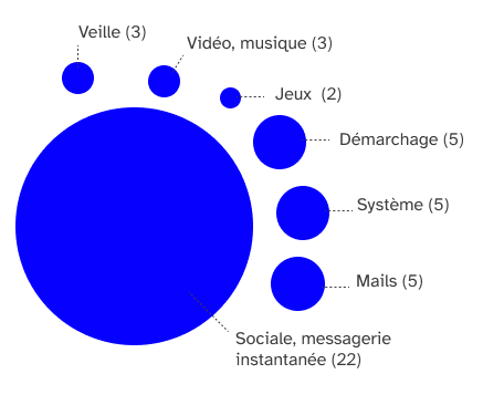 - Sociale, messagerie instantanée : 22 fois utilisé ;