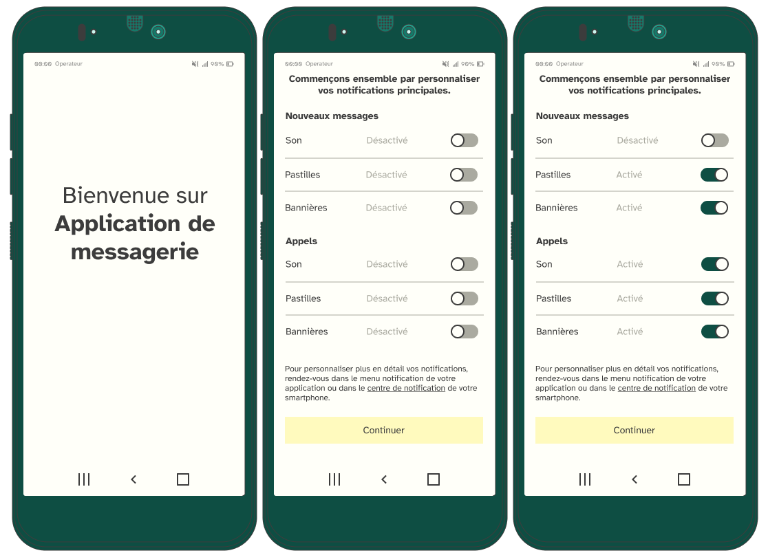 Exemple de paramétrage des notifications principales dès l’installation de l’application.