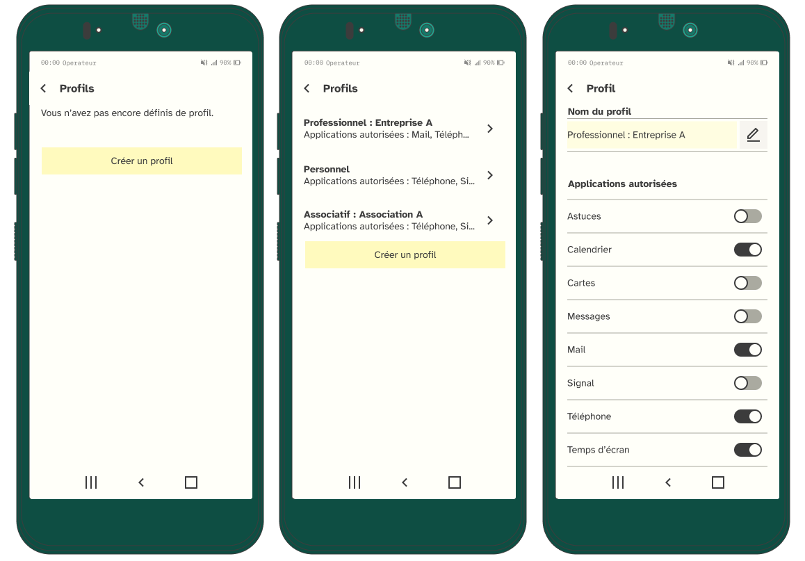 L’idée est de laisser l’utilisateur⸱ice maitre des profils disponibles. Il peut créer des profils qui s'adaptent à sa vie.