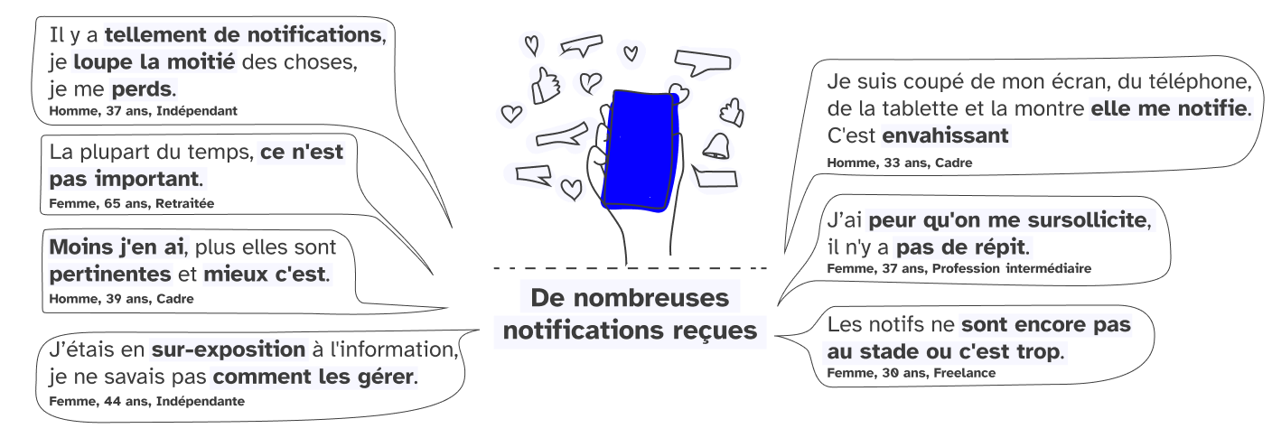 - Il y a tellement de notifications, je loupe la moitié des choses, je me perds. (Homme, 37 ans, indépendant) ;