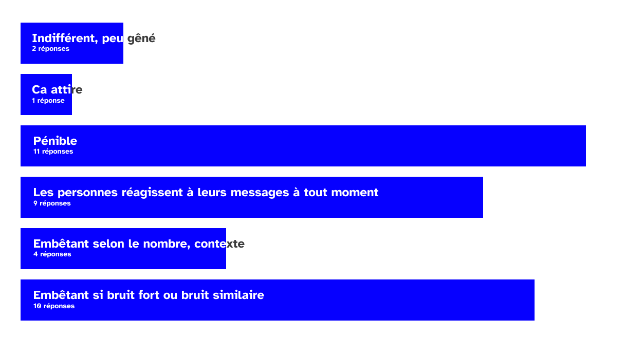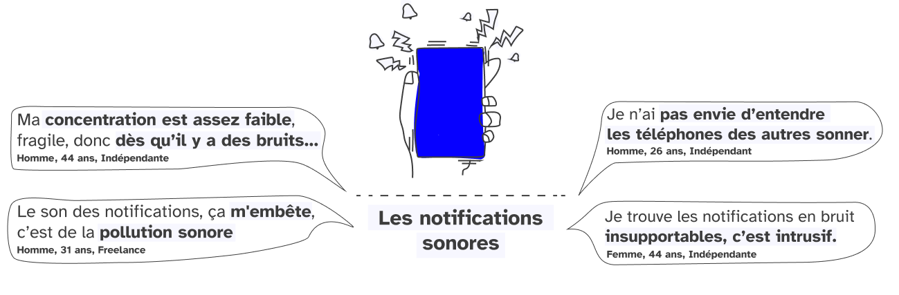 - Le son des notifications, ça m’embête, c’est de la pollution sonore. (Homme, 31 ans, freelance) ;